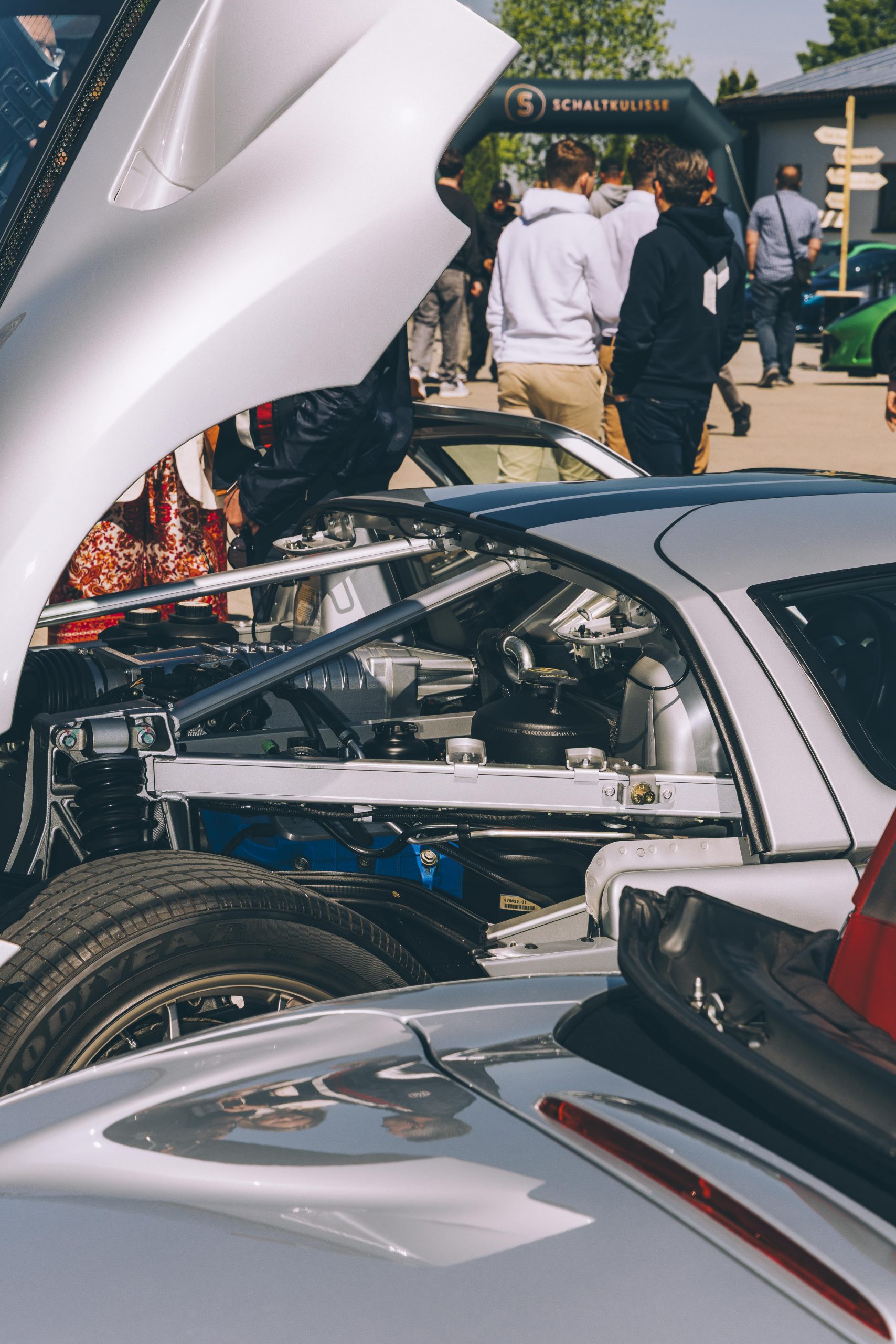 This is a map showing the layout of  the Caffeine Injection Event. We have two different types of parking spots one for display cars and one for visitors. The main event location hosts  food stands, drinks, music and selected cars and our Schaltkulisse Showroom where our shop is also located. We are looking forward to seeing you on the 11th of April 2026!